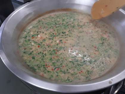 給食室では釜いっぱいのぞう煮が作られています。