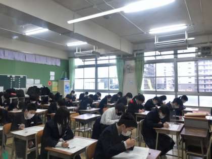 先週金曜日、本日と2日間3年生は第5回実力テストに取り組んでいます。