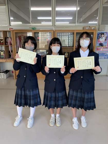 吹奏楽部、大野さん(アルトサックス)、指江さん(トランペット)、松田さん(トロンボーン)が出場し、三名とも見事銀賞を受賞しました。