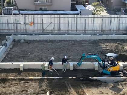型枠撤去後には、除けてあった土の埋戻し作業が行われていました。(下の写真)