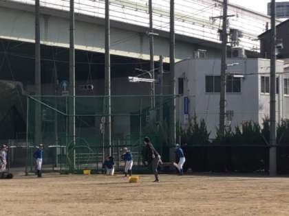 第2グラウンドでは野球部が練習を行なっています。バッティングからの守備練習に取り組んでいます。一つ一つの動きを全力で頑張っています。