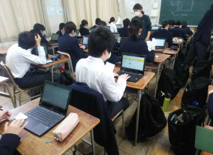 1年生は、12日に各クラスでパソコンの学習をおこないました。今回は、『TEAMS』の使い方などを体験しました。うまくいかないことも多かったようですが、相互に教えあったりして熱心に取り組んでいました。