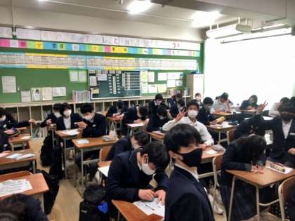 私学入試が終わった翌日の総合の時間では、お世話になった先生たちに宛ててメッセージを書きました。授業や部活でお世話になった先生に向けて一人一人が感謝を込めてメッセージを書いています。
