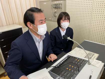 皆さんが夢や目標に向かって、この冬も元気に勉強を続けられることを願っています。とあります。皆さんに「エアリズムマスク」を配付させていただきます。健康に注意して頑張ってください。と話されました。
