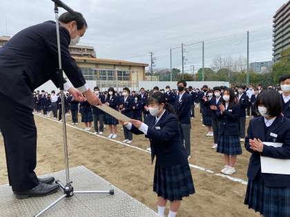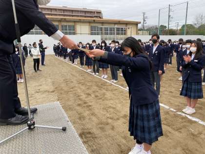 を受けて、全校の皆さんに伝達されました。日頃の頑張りが評価されました。おめでとうございます。