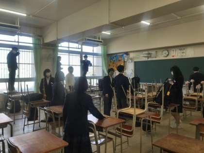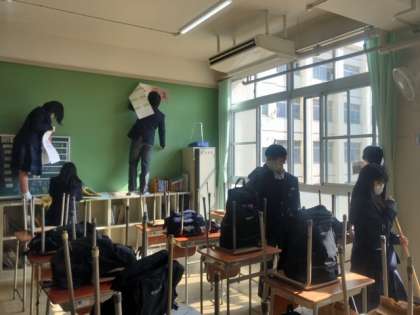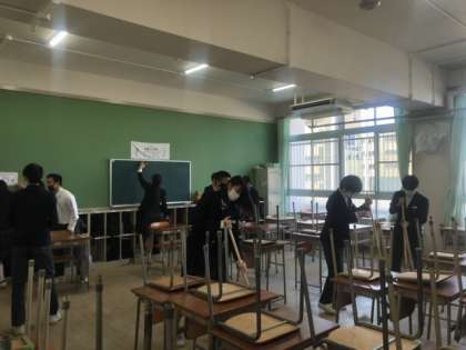 3年生は8日の6限目、大掃除を行いました。2年間使わせてもらった7号館の教室や廊下を、感謝を込めてキレイにしました。