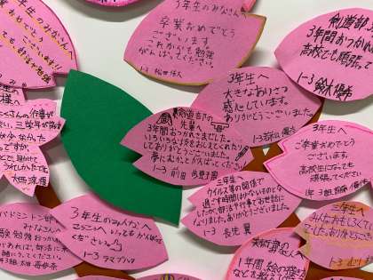 在校生にとっては、お世話になった先輩方とも、今日をもってお別れとなりました。先輩方から受け継いだことを大事にして、今後の学校生活に生かしてください。