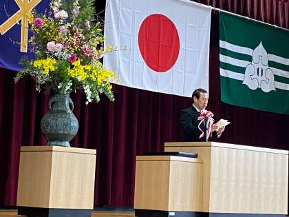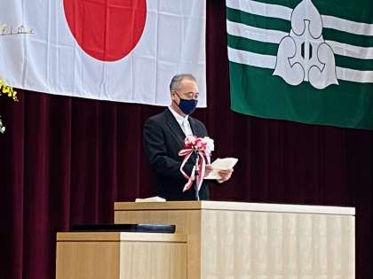 「365日の紙飛行機」という歌詞を引用して、これからの人生を「失敗を恐れず何事にもチャレンジしてください」と、積極的に生きることの勧めをいただきました。