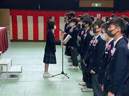 生徒会長による送辞です。先輩がたの協力される姿を見て、その想いを受け継いで行きます。