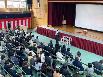 卒業式退場後、体育館にて学年主任の石濱先生より、保護者のみなさまへお礼のことば、73期生への想いをお話ししました。