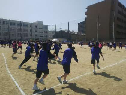 1年生は、19日の午後球技大会を行いました。男女別に各クラス総あたりのリーグ戦でローテーションドッジボールを行いました。どのクラスもうまく作戦を立てて臨んでいました。