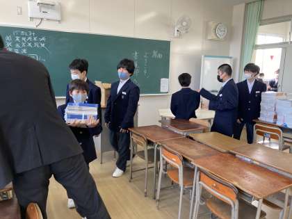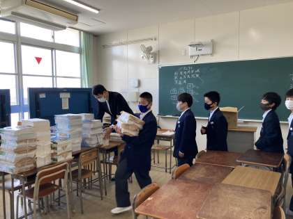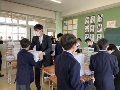 入学式後は、教室に戻り教科書を受け取りました。来週から授業も始まります。きちんと名前を書き、どんな内容が書かれているか中身も目を通しておきましょう。