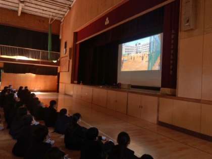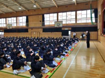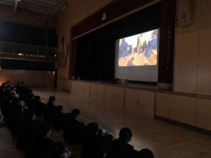 本日4限目、1年生は体育館で部活動紹介を行いました。明日から始まる部活動体験に向けて、それぞれの部活動で作成された紹介動画を観ました。例年と異なる形での紹介となりましたが、どの部活も新入生のために準備してくれました。