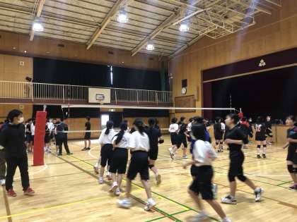 写真はバドミントン部、バレーボール部、陸上部の様子です。