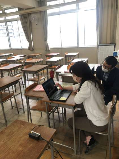 1年生は午前10時50分から2回目のオンライン学活を行いました。出席をとりながら、接続の確認を行い、それぞれのクラスでチャットを使ってのやりとりを行いました。