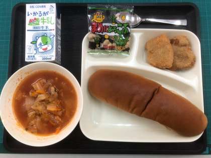 パン・牛乳・一口トンカツ・ミネストローネ・豆こんぶ