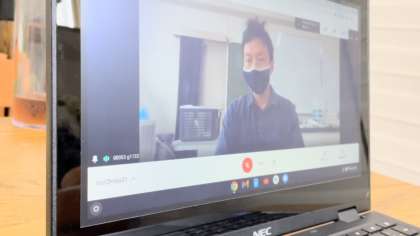 本日、1年生は朝学活からミートを用いての学年集会を行いました。