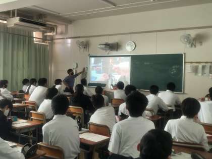理科は化学的分野で酸化銀の熱分解について、実験の映像を見ながら学習しています。