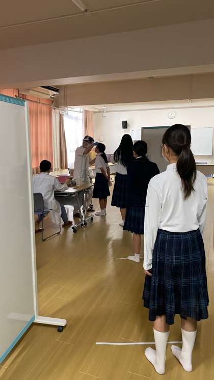 新型コロナウイルス感染症の予防のため、生徒のみなさんはマスクを直前まで着用し、手洗いをしてから教室に戻りました。引き続き、感染対策をしながら安心して検診を実施していきます。