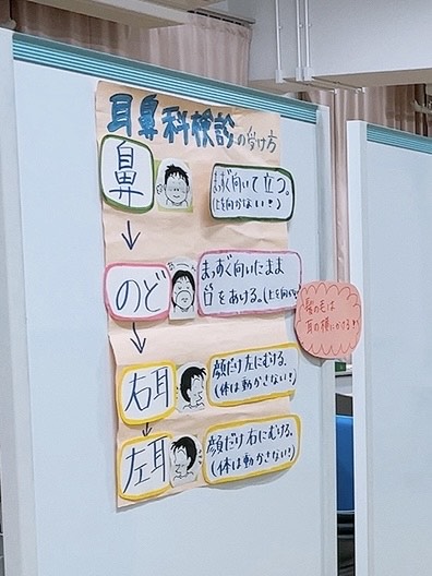 一人ずつ順番に並び、器具を使って鼻、耳、のどの状態を学校医の先生に診ていただきました。