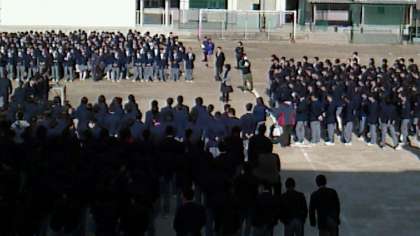 3月11日(水)に歌島中学校のグランドで、1・2年生が「3年生を送る会」を生徒会を中心にして行われました。