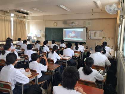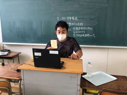 本日、1年生はオンラインで学年集会を行いました。