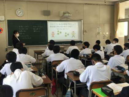 今日は実習生による保健の研究授業が行われました。健康や運動について考え、意見を発表し合いました。