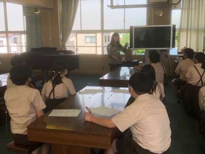 校区の野里小学校に、中学校教員が訪問し、6年生の児童のみなさんに向けて体験授業を行いました。
