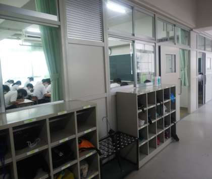 今回は、テストのようすを廊下から撮りました。緊張感が伝わっています。