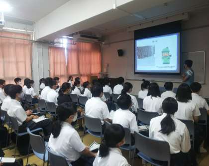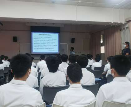 熱中症の予防について、花本先生の話のあと、アニメを鑑賞し、クイズもまじえて考えていきました。