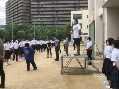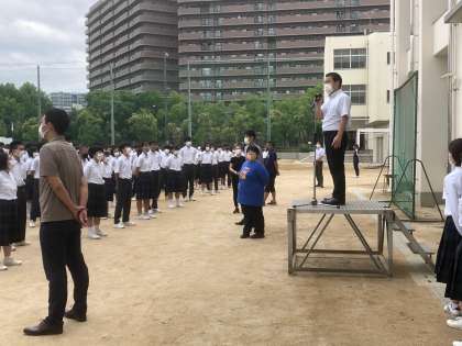 校長先生からは、大雨の自然災害があったことから、西淀川区でも地震や津波等の自然災害について学び備えましょう、とのお話がありました。