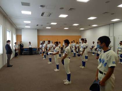本日、野球部が西淀川区役所を表敬訪問し、西淀川区長に大阪府大会準優勝と近畿大会出場の報告を行いました。表敬訪問の様子と選手へのインタビューは、西淀川区の広報誌に載せていただきます。