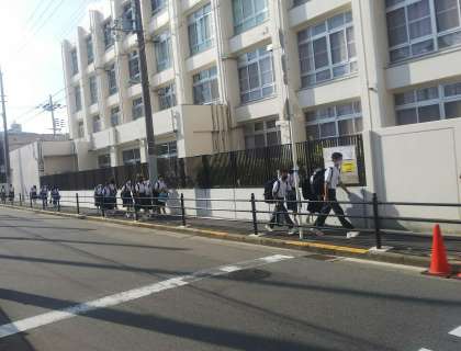 二学期の始業式の 日の登校風景です。