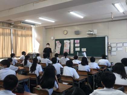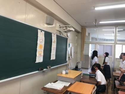 本日1限目に、各学級で学級旗のデザインを決めました。夏休みの宿題でそれぞれが案を考えてきたものを、話し合いや投票でクラスの旗のデザインが決まりました。