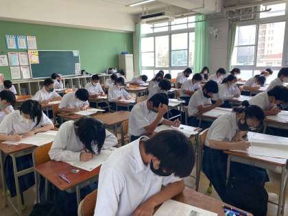 校内でのテストとは少し違うので新たな学びもあったでしょう。より入試本番の形に近くなっています。問題用紙は持ち帰っていますので、見直し等をして、今後に活かしてください。
