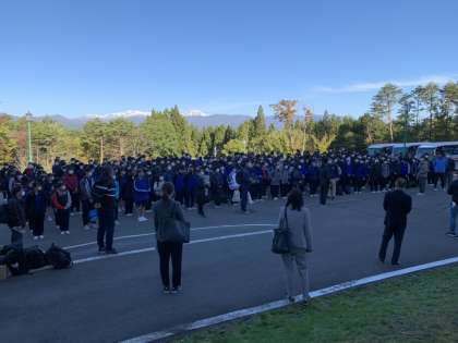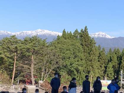 出発前に全体写真も撮りました。後ろに見える雪山も素晴らしいです!