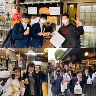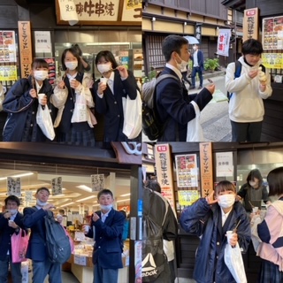食べ歩きは出来ませんでしたが、お店の前でいろいろ食べました。
