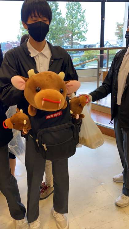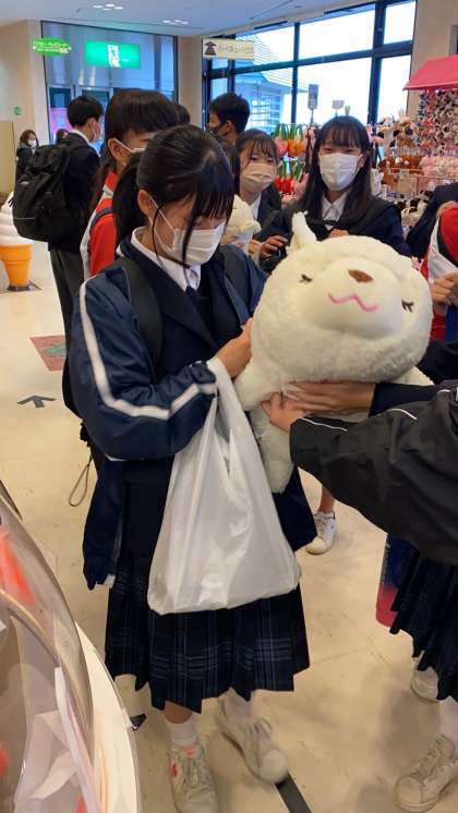 牧歌の里にハズレなしのぬいぐるみくじがありました。一番上の特賞はかなり大きなぬいぐるみになるのですが、みんなやっていました。その中で2人が大きなぬいぐるみを当てていました!