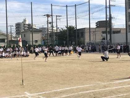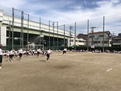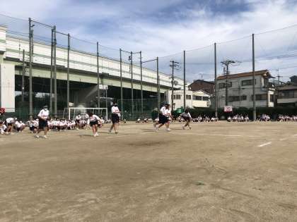 鉄人リレーの様子です。ラケットにテニスボールをのせて50mを走ります。