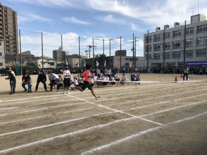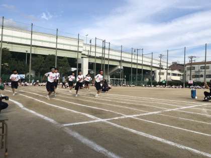 男子800mリレーです。1人200mを走ります。クラスの代表として負けられない、という本気の表情がみられました。