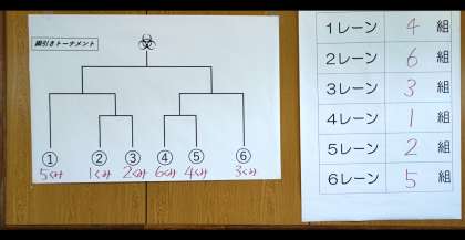 また、11月に予定されている2年生の陸上競技大会の、綱引きの組み合わせと、走るレーンの抽選を行いました。結果は上の写真のように決まりました。