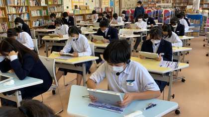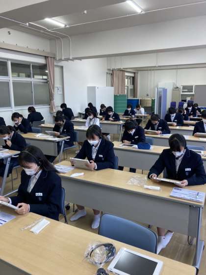 スピーキングテストではタブレットに自分の声を録音します。普段はないことなので、緊張している様子でした。