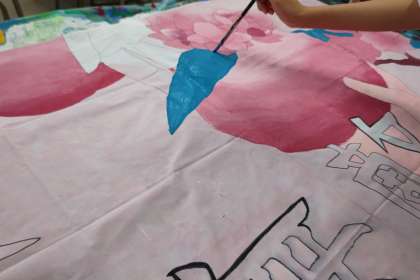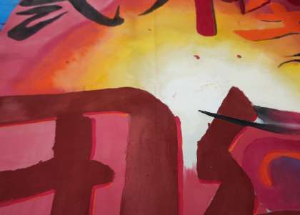 2年生は、本日の放課後も、学級旗の作成に取り組みました。作業が進むにつれて、各クラスの決意を示す文字も見えてきました。