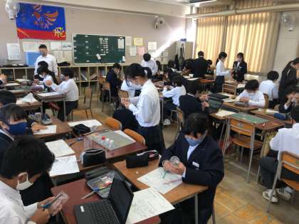 本日から1年生も文化発表会の取り組みが始まりました。1回目はペットボトルを風車の形にする作業を行いました。