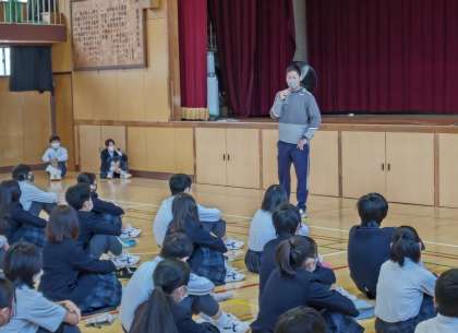 丸橋先生からは、ルールを守ることの大切さと、モラルについて考えモラルを大切にしていこうという話をしました。