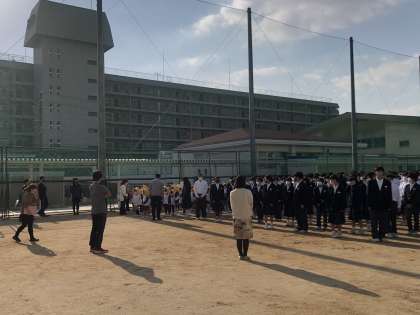 野里幼稚園の園児も、防災頭巾を被って訓練に参加しました。