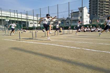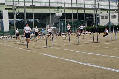 50mハードル走、ハードリングのうまさとスピードが要求されます。