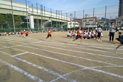最後の種目はリレーです。4人で女子は400m、男子は800mを走ります。大声援の中での力走です。