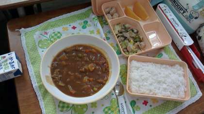 今日は生徒たちに人気のメニュー「ポークハヤシライス」でした。