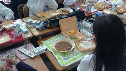 クラス全員一斉に「いただきます」と食べはじめ、おいしそうに食べていました。